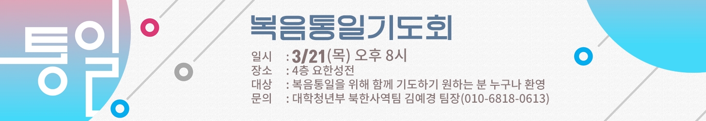 대상 : 복음통일을 위해 함께 기도하기 원하는 분 누구나 환영