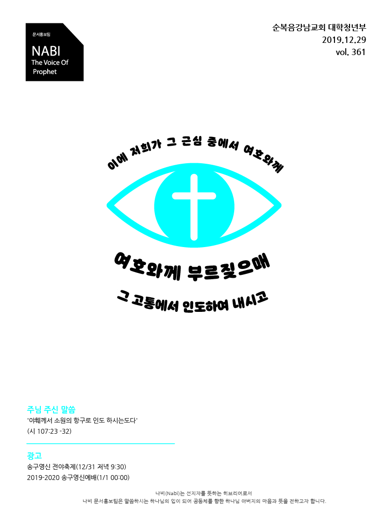 2019년도 12월 다섯째 주일 청년주보 '나비'