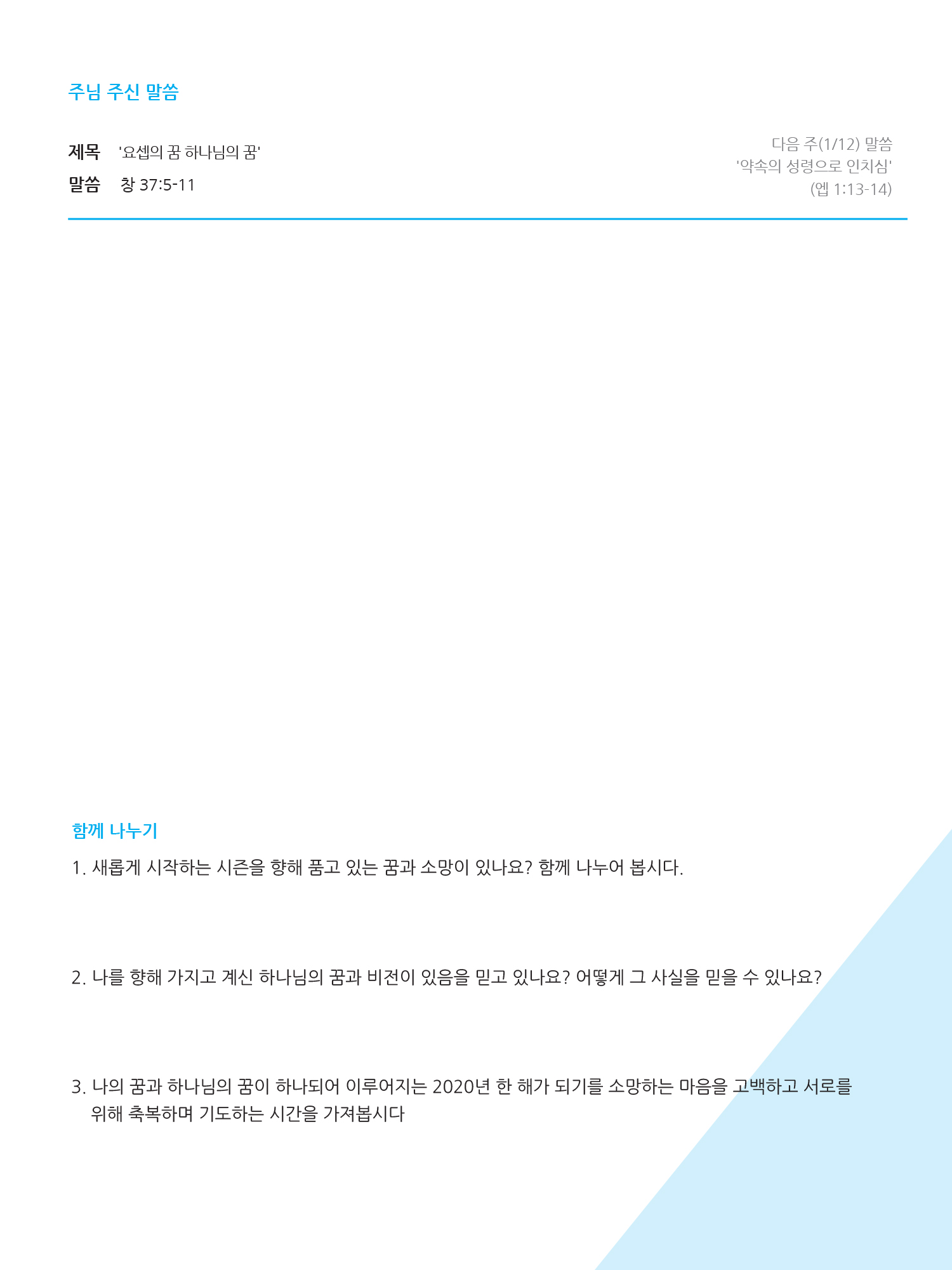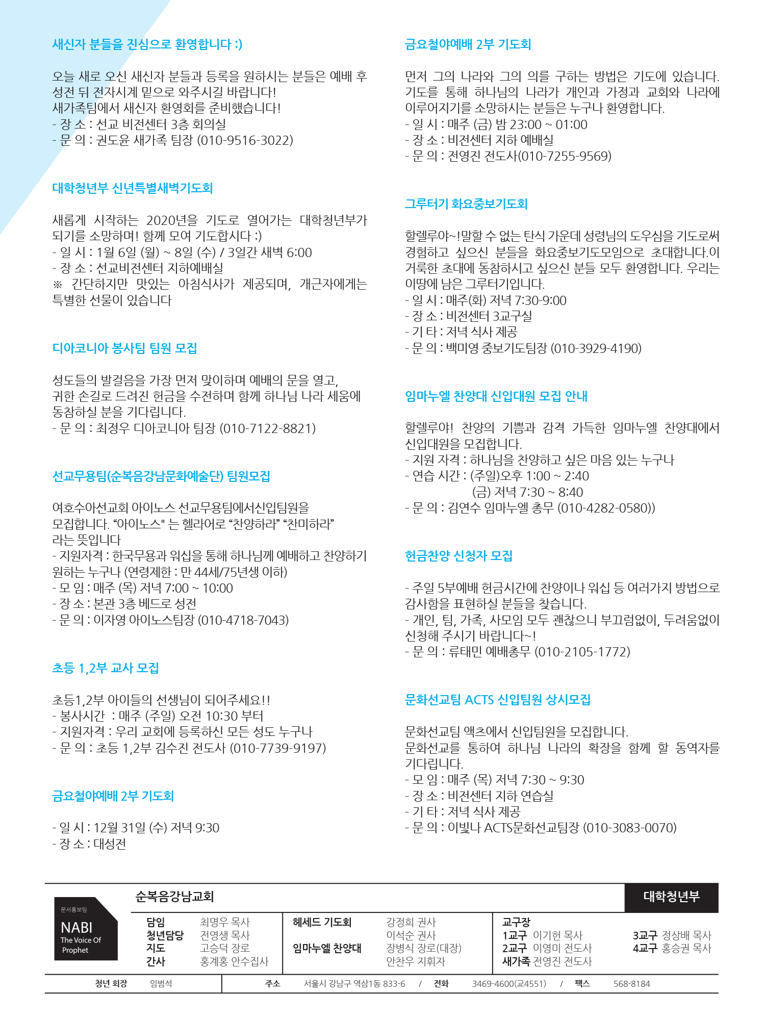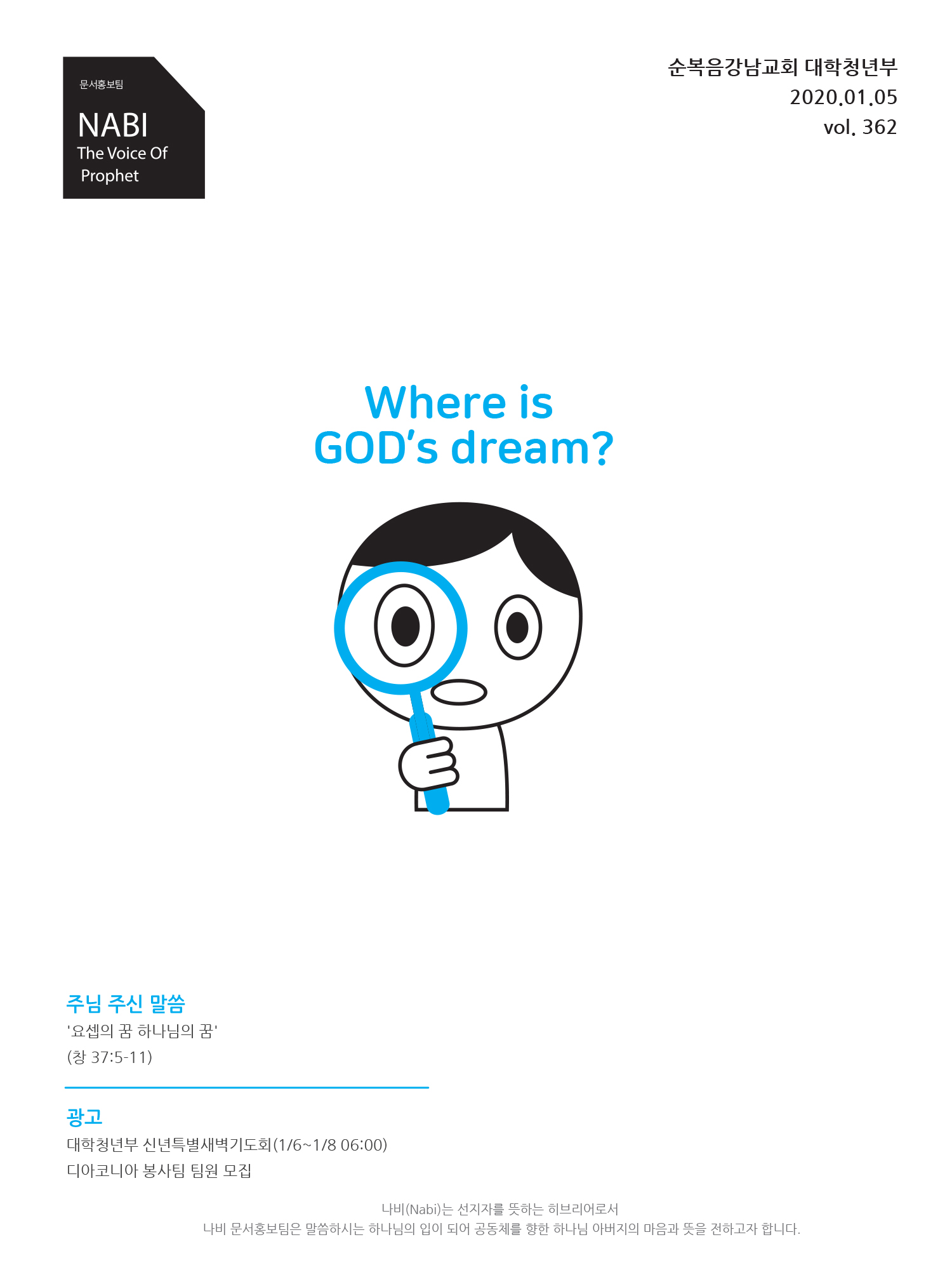 2020년도 1월 첫째 주일 청년주보 '나비'
