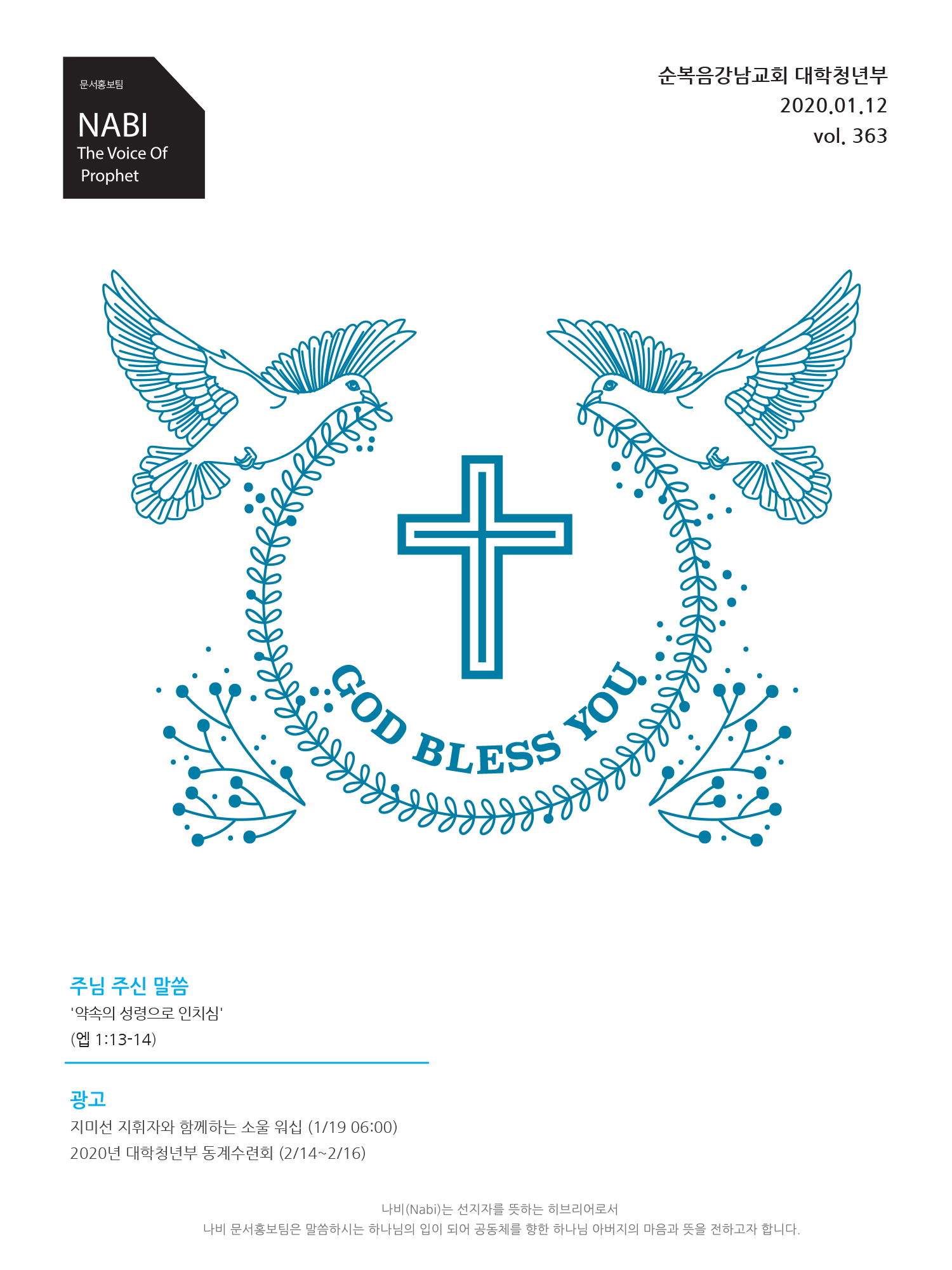 2020년도 1월 둘째 주일 청년주보 '나비'
