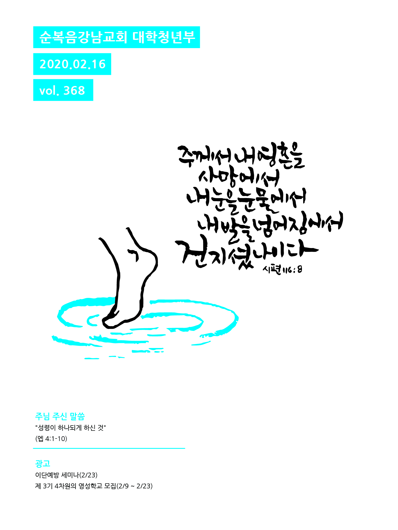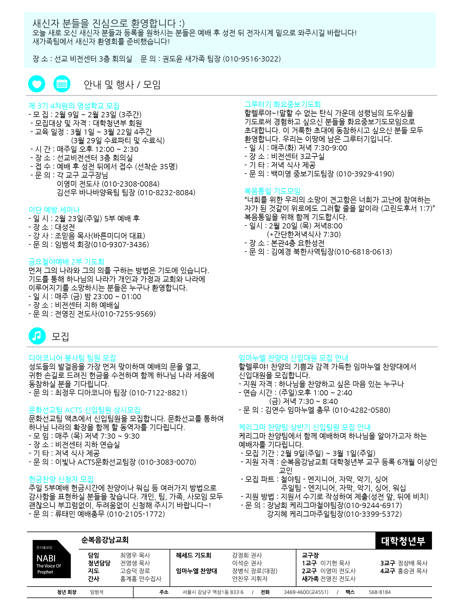 2020년도 2월 셋째 주일 청년주보 '나비'