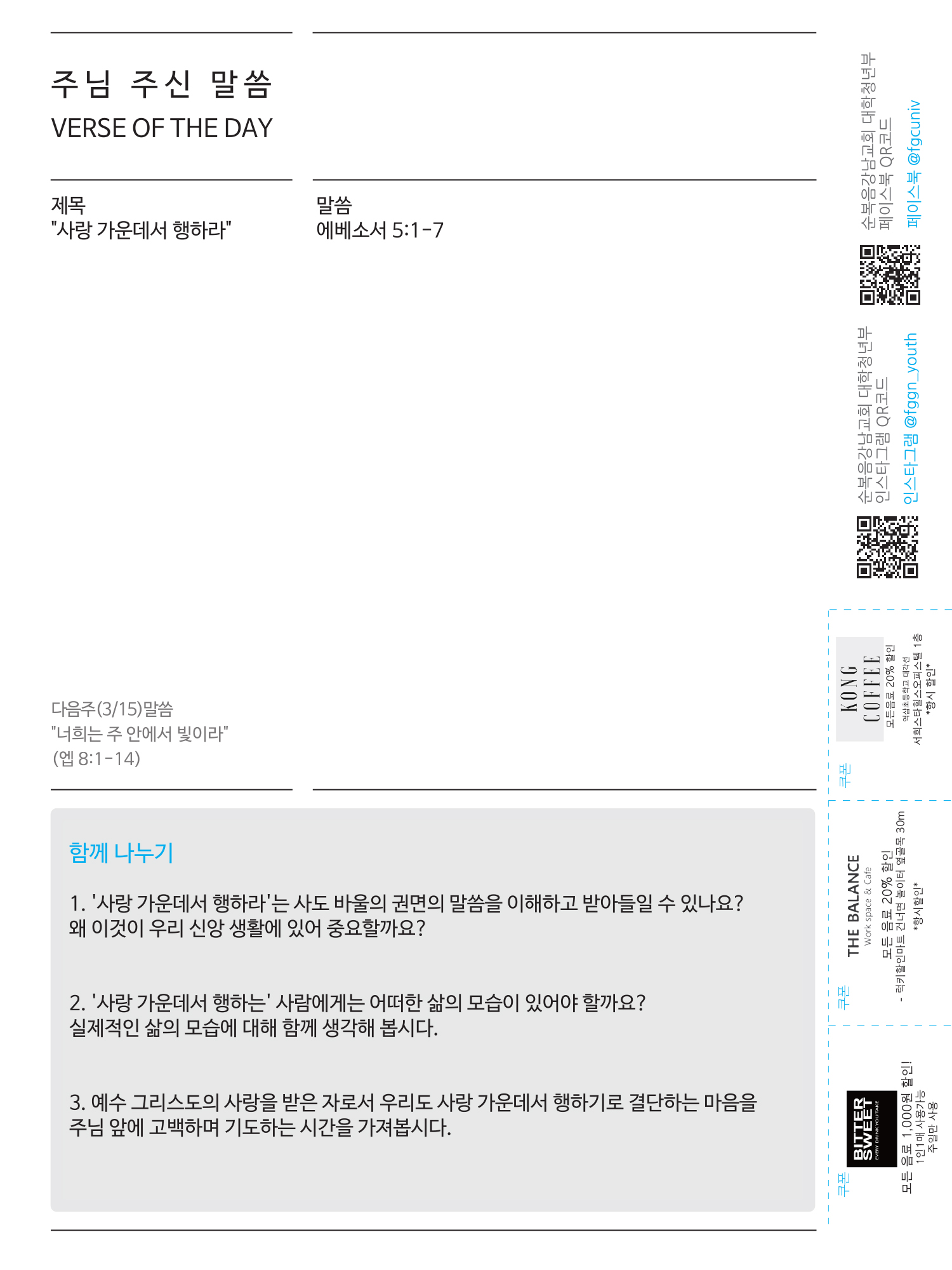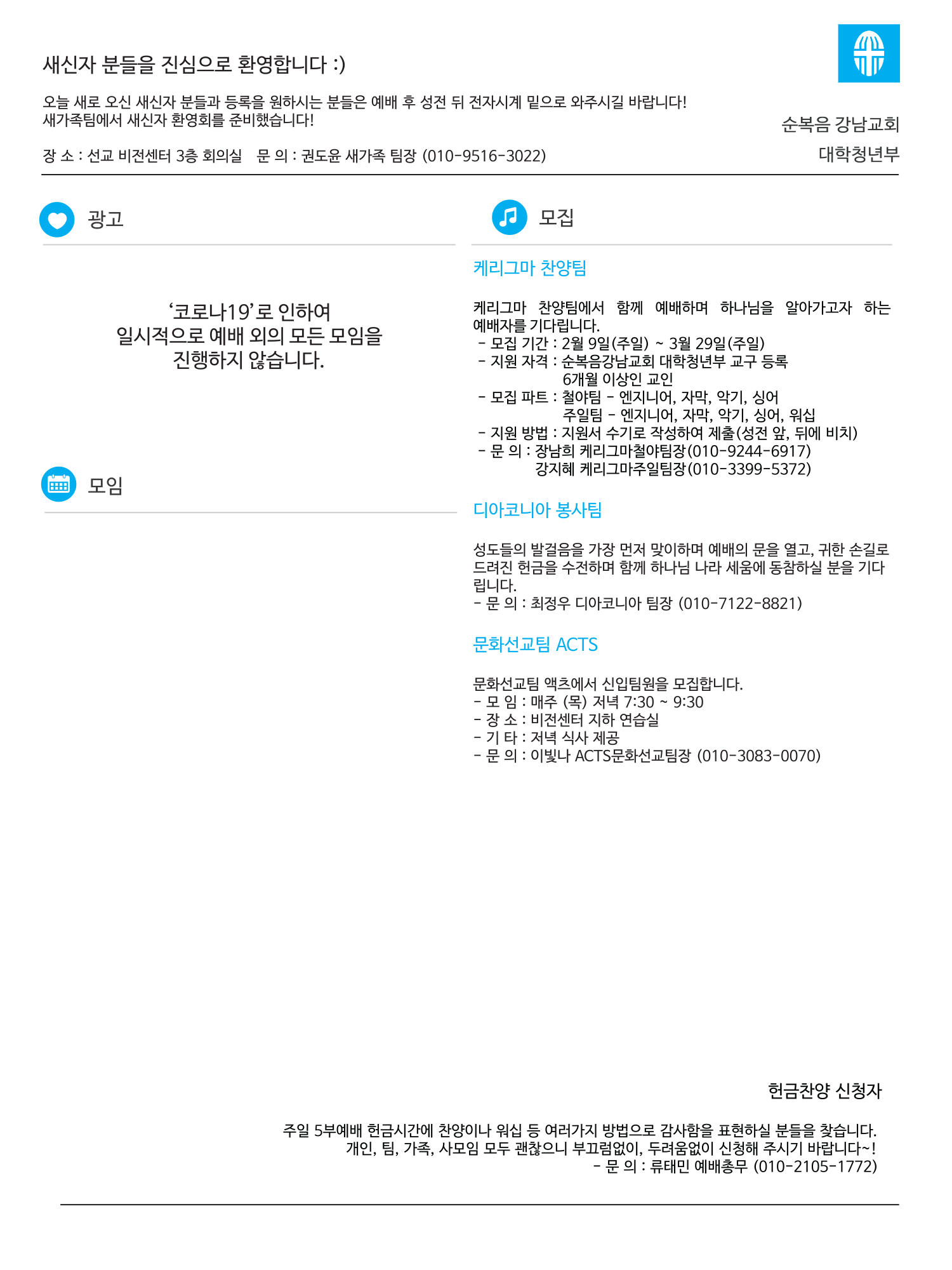 2020년도 3월 둘째 주일 청년주보 '나비'