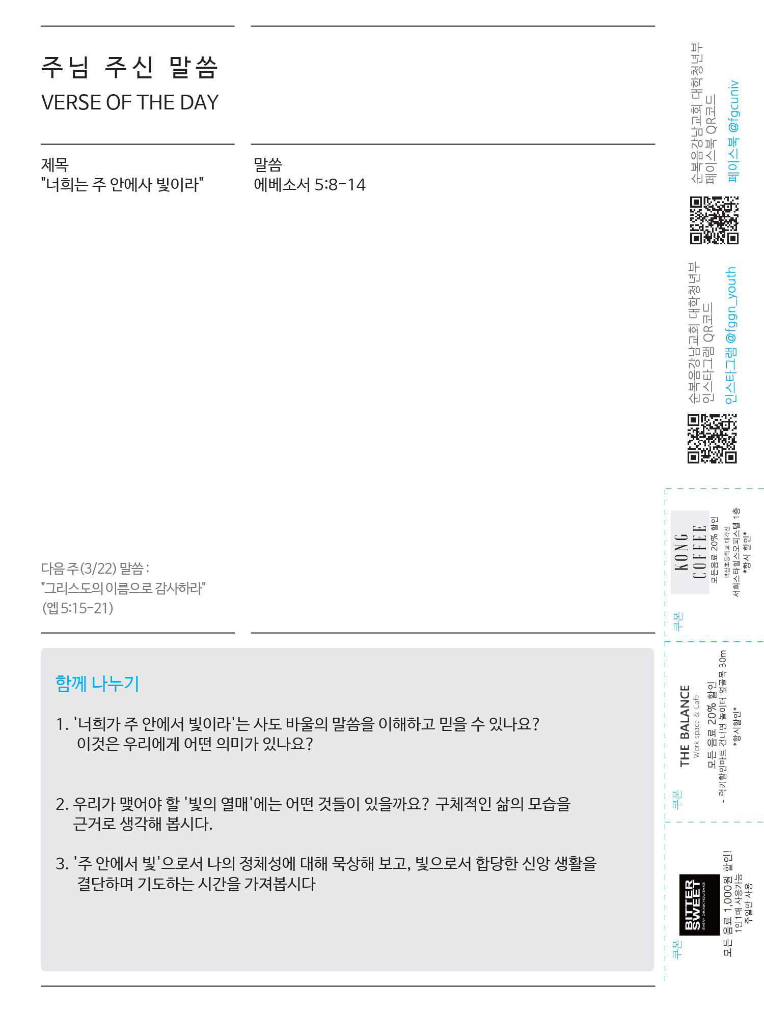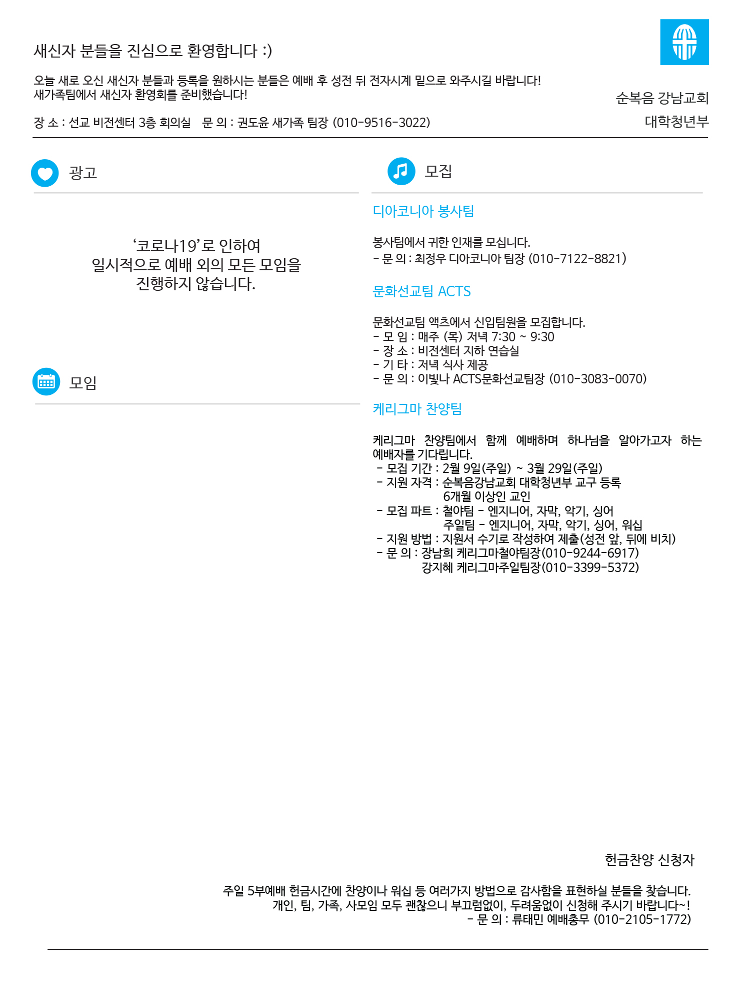 2020년도 3월 셋째 주일 청년주보 '나비'