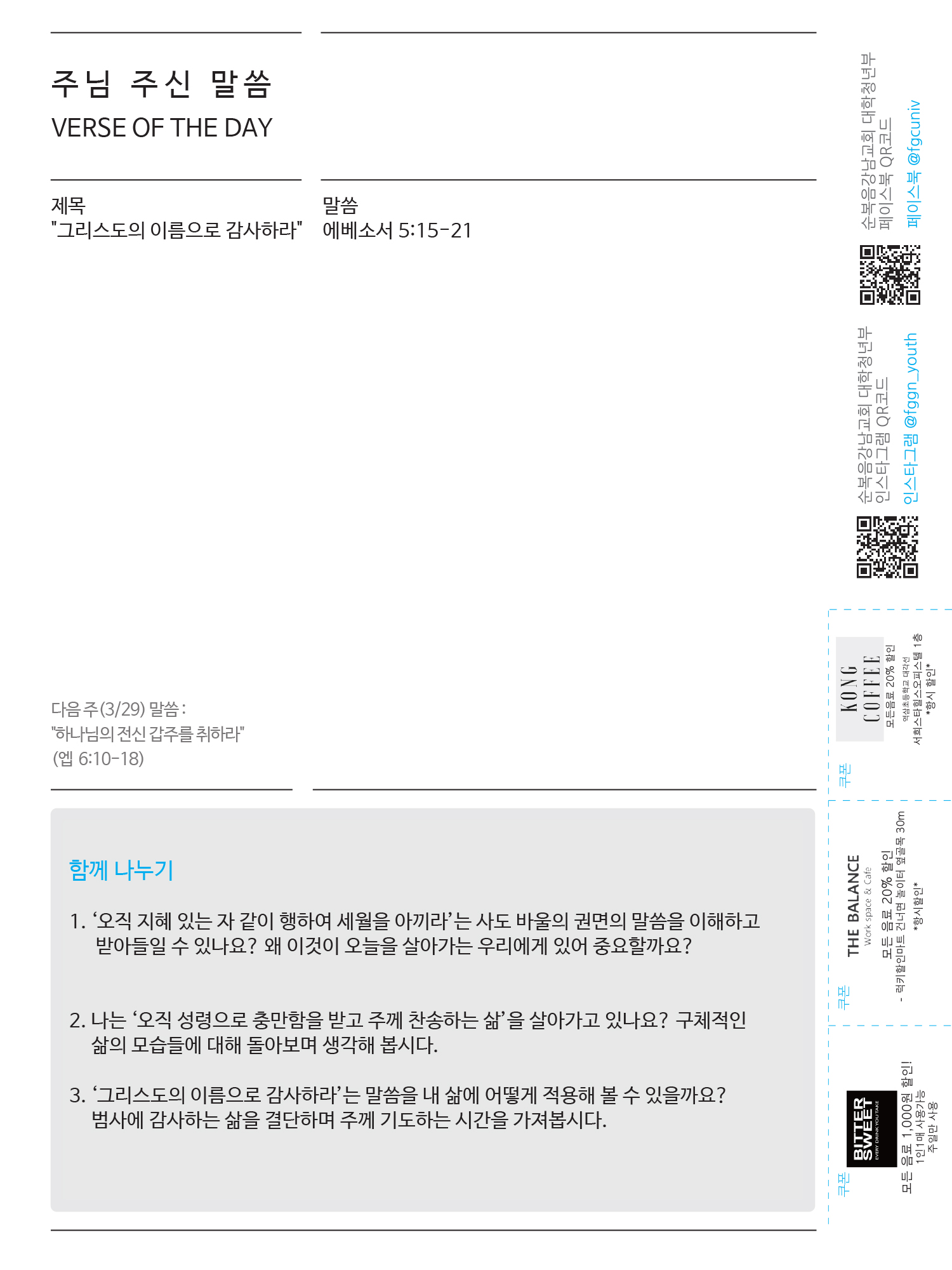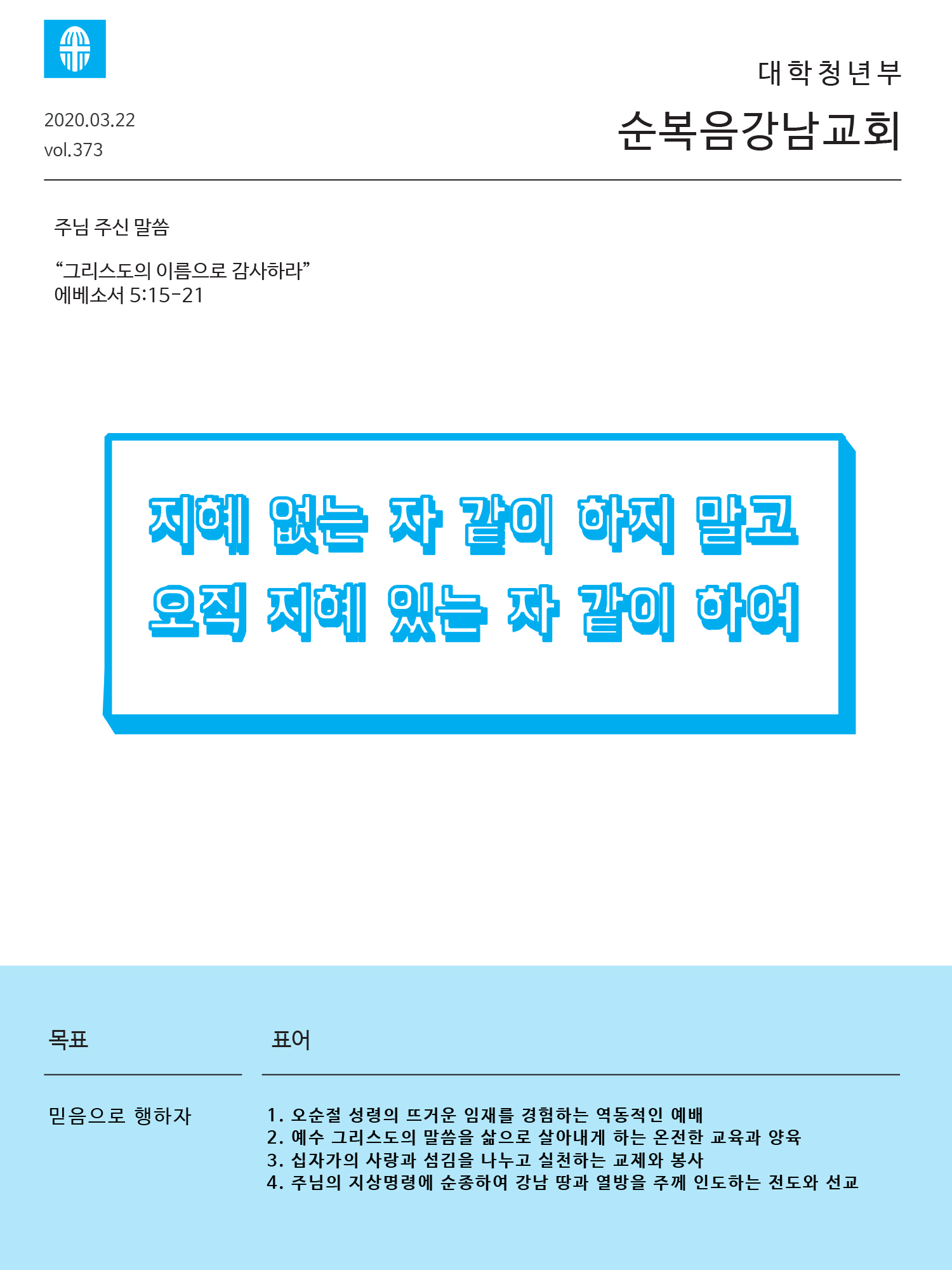 2020년도 3월 넷째 주일 청년주보 '나비'