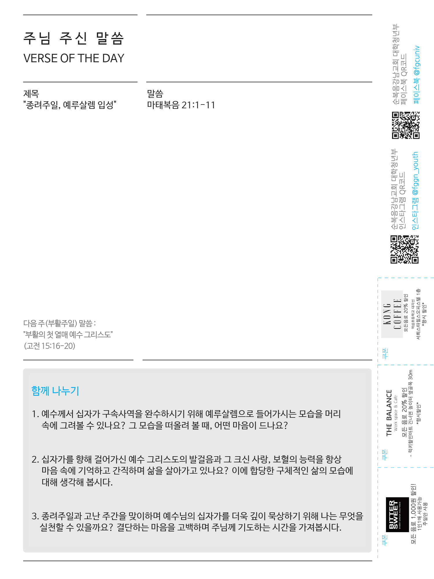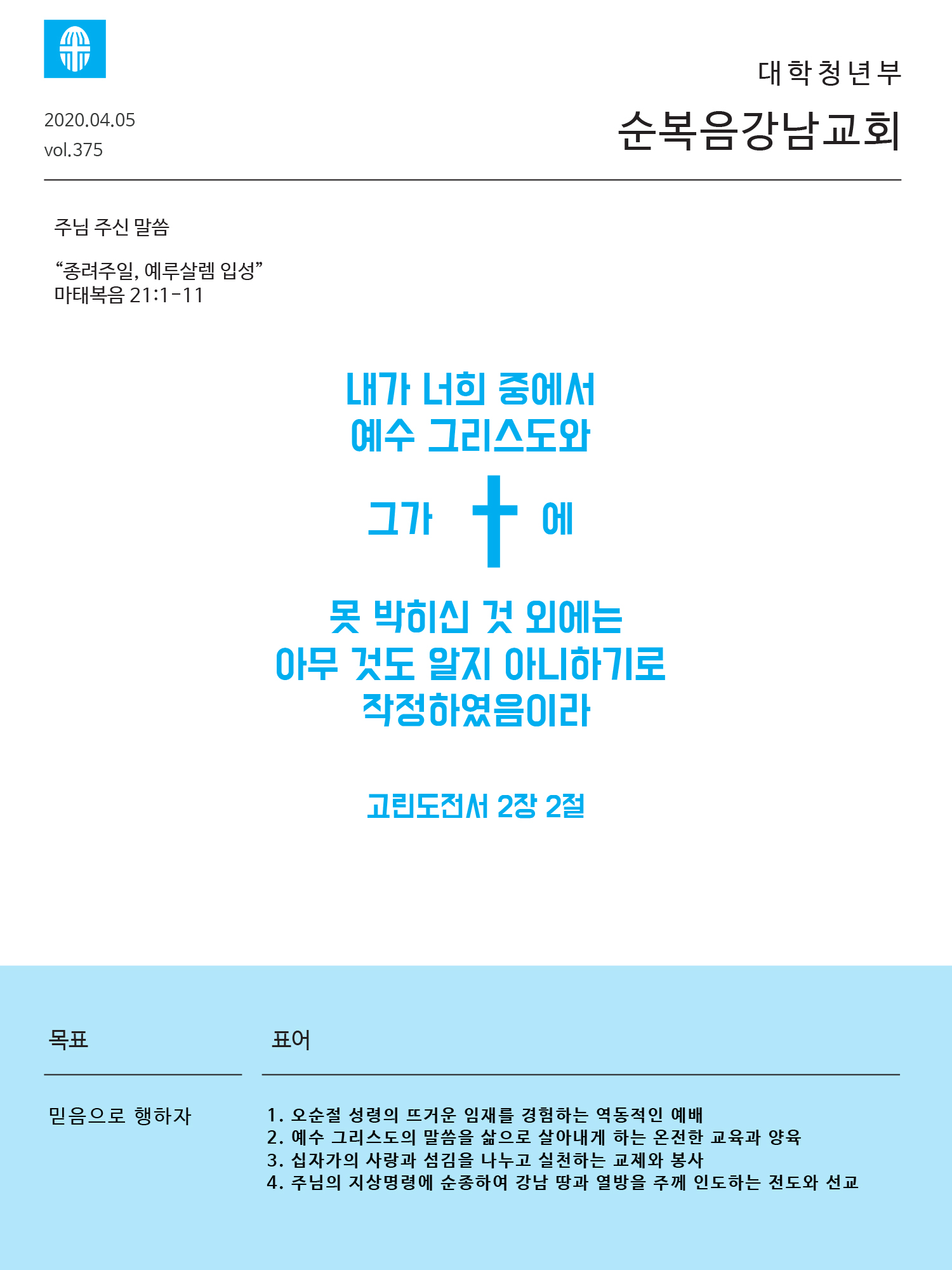 2020년도 4월 첫째 주일 청년주보 '나비'