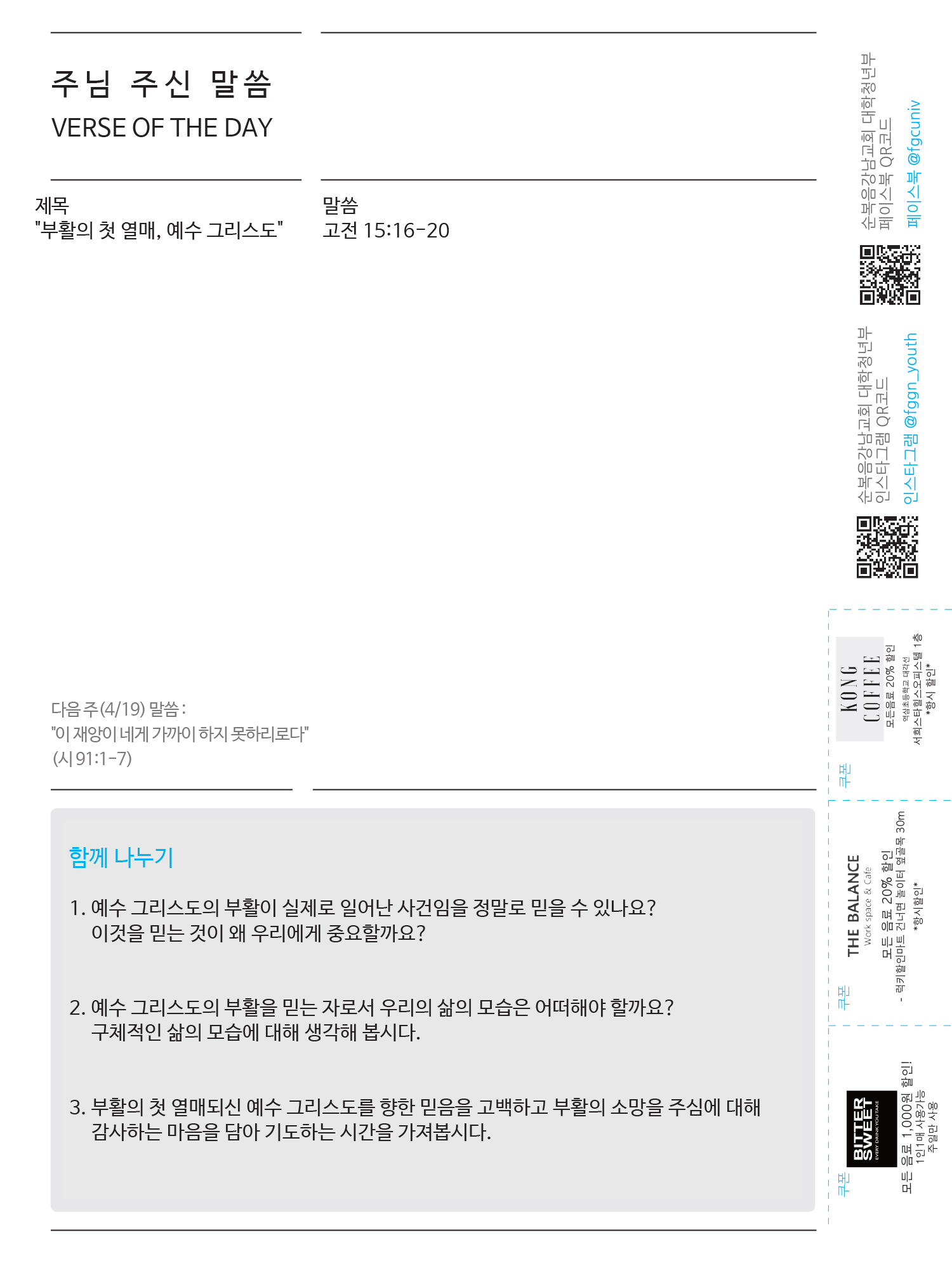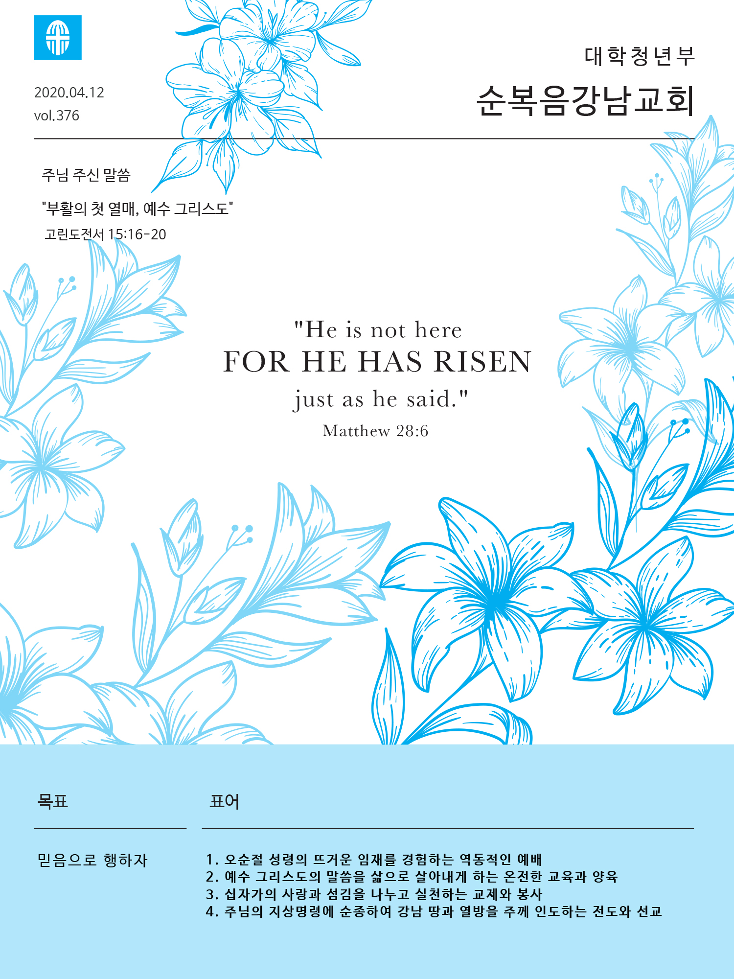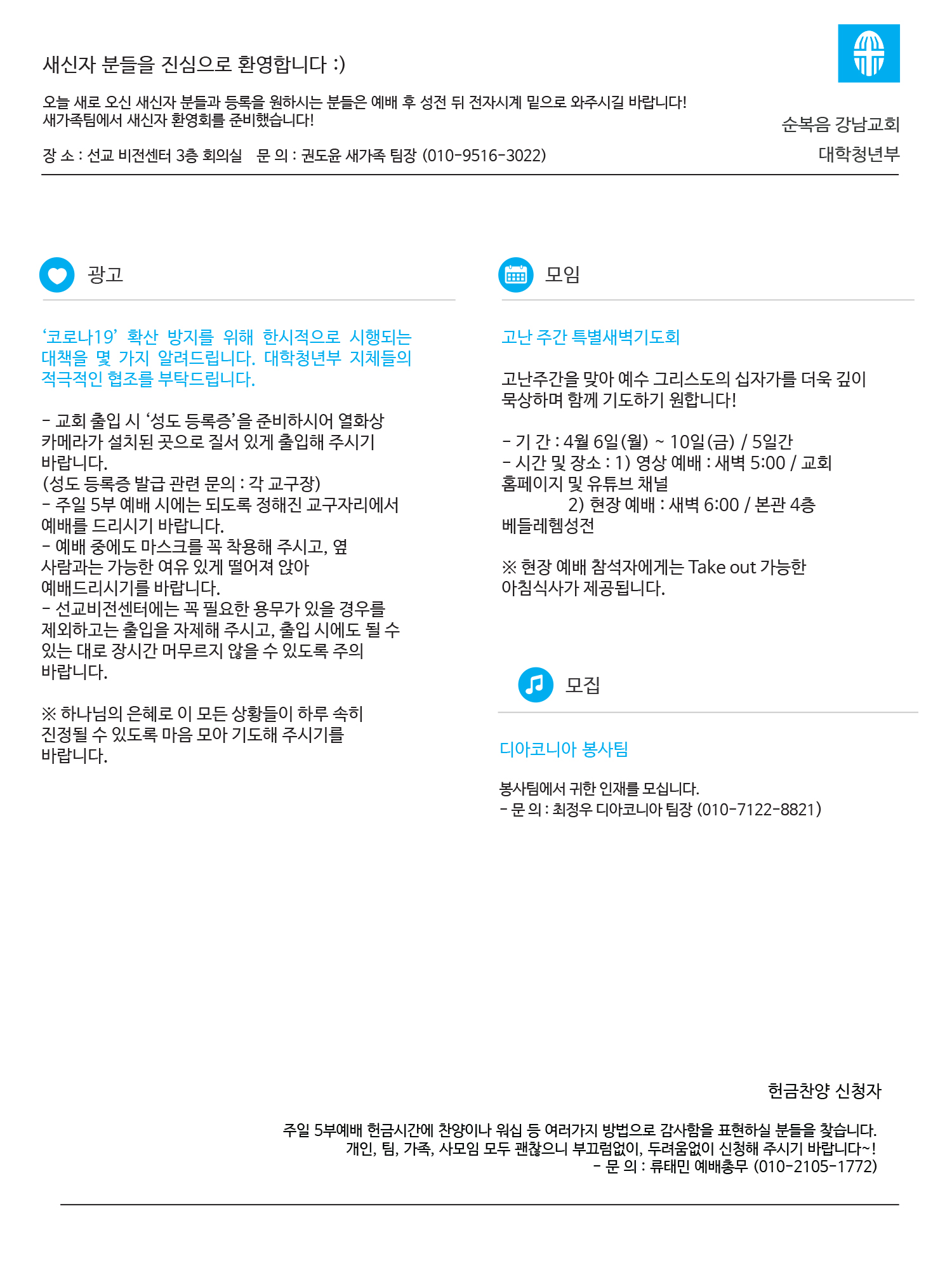 2020년도 4월 둘째 주일 청년주보 '나비'