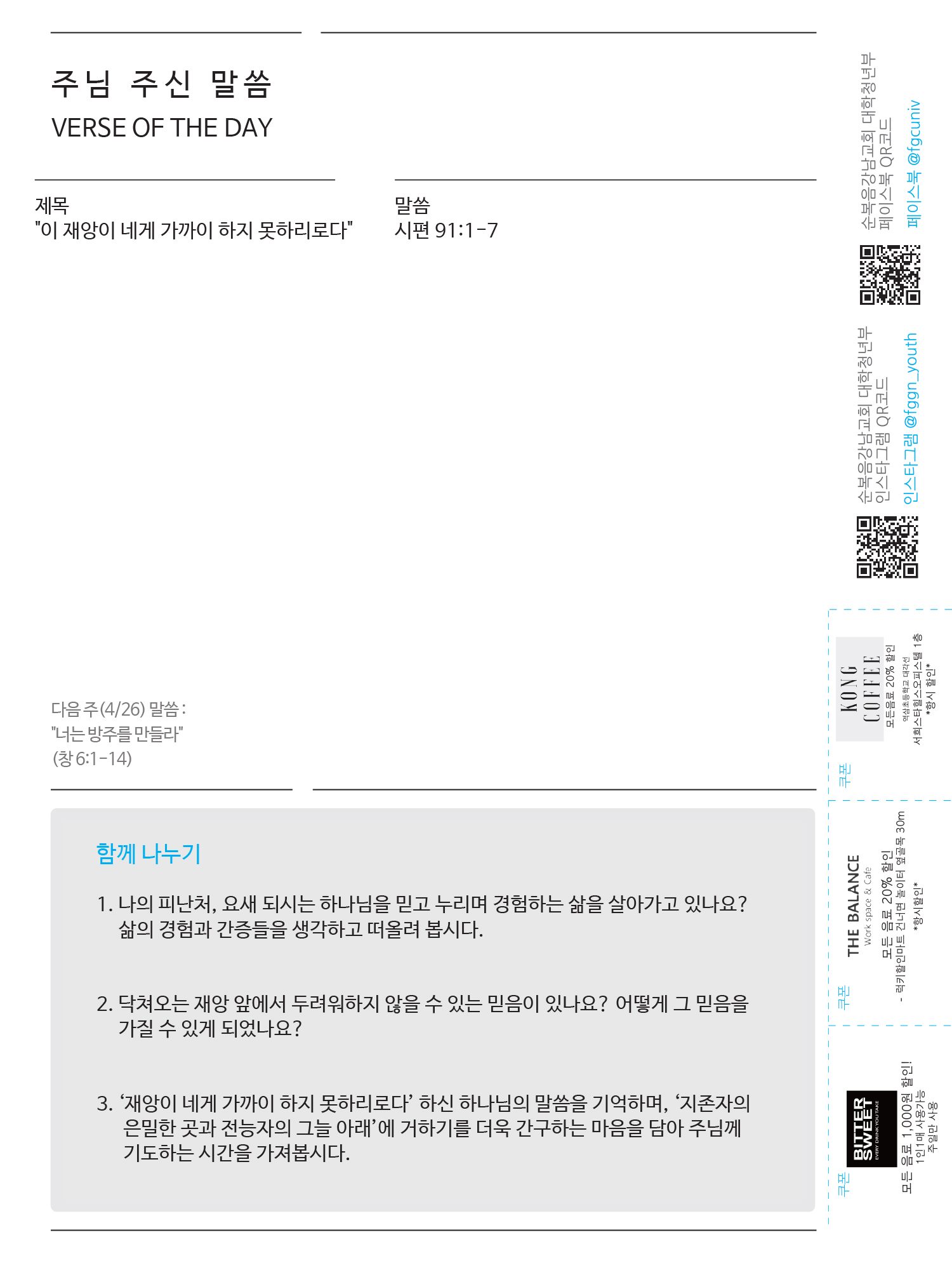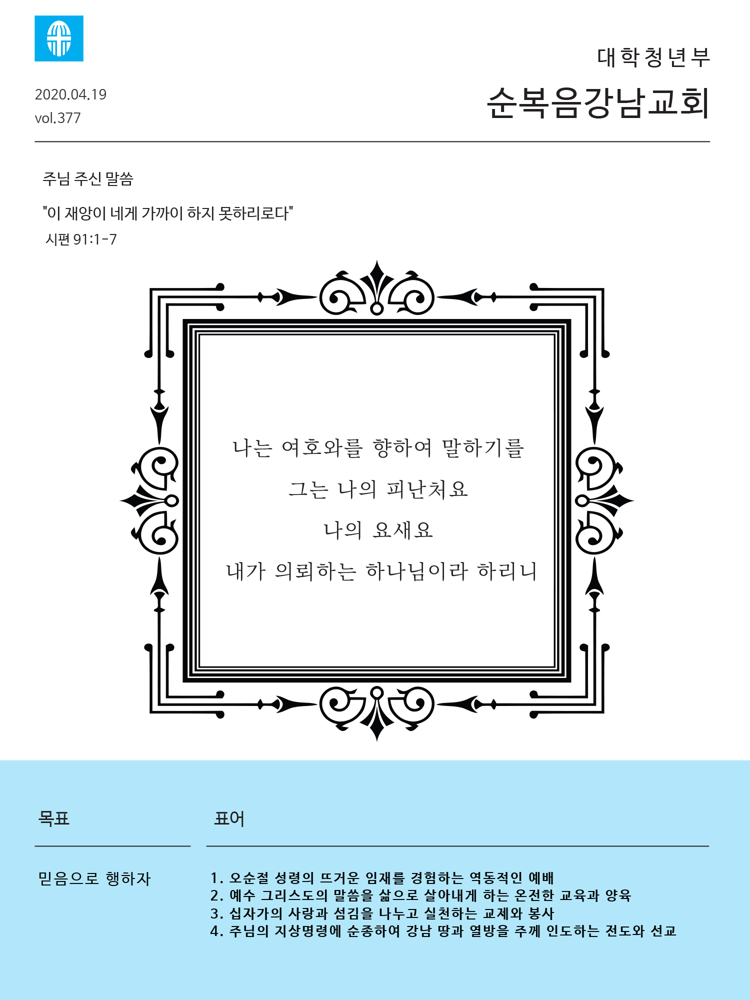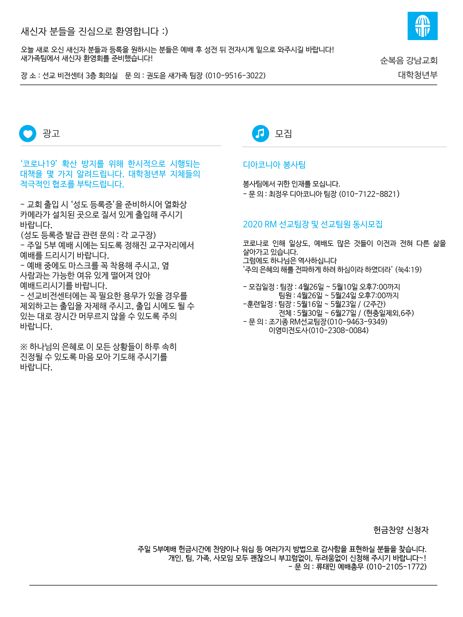 2020년도 4월 셋째 주일 청년주보 '나비'