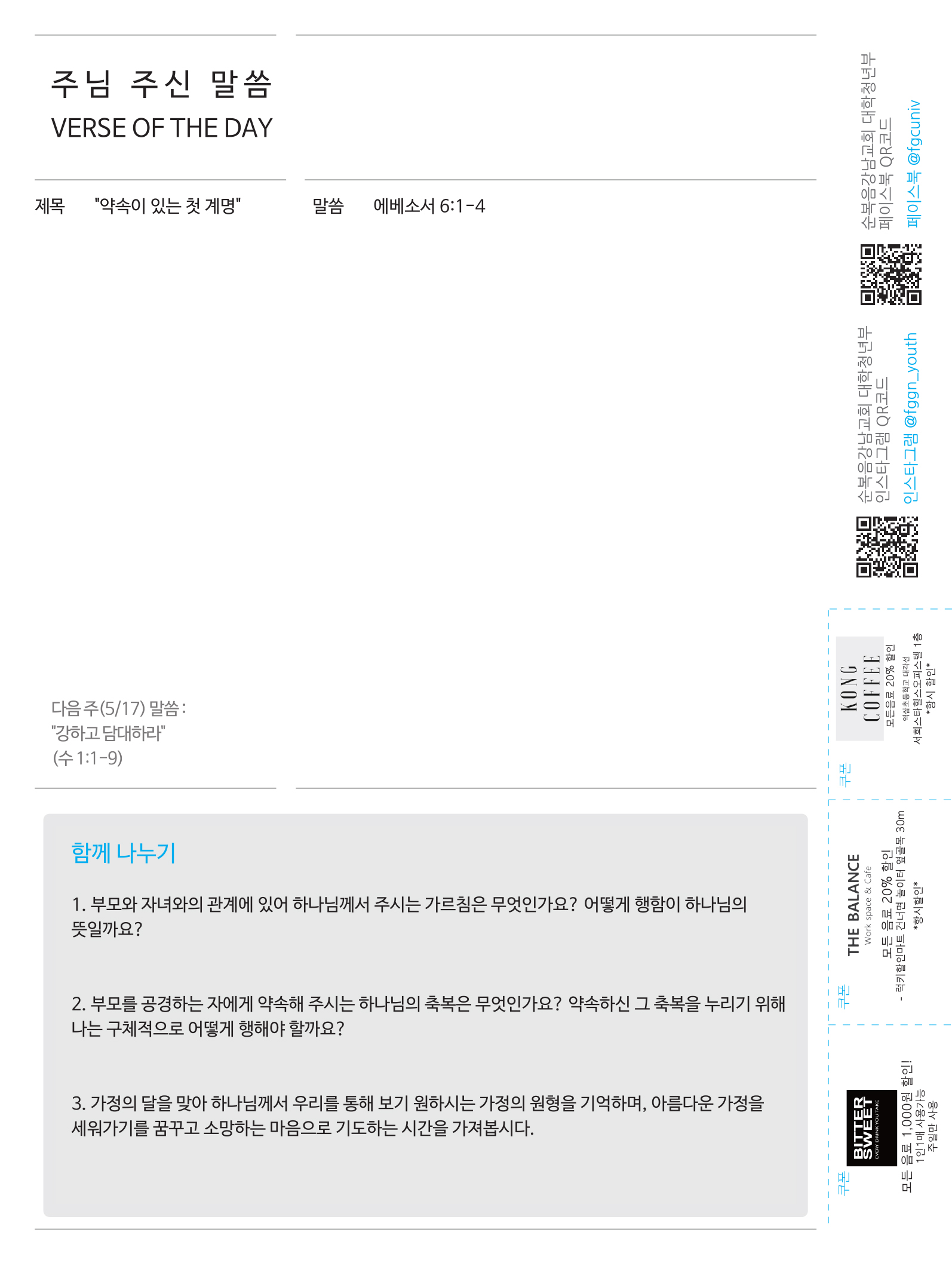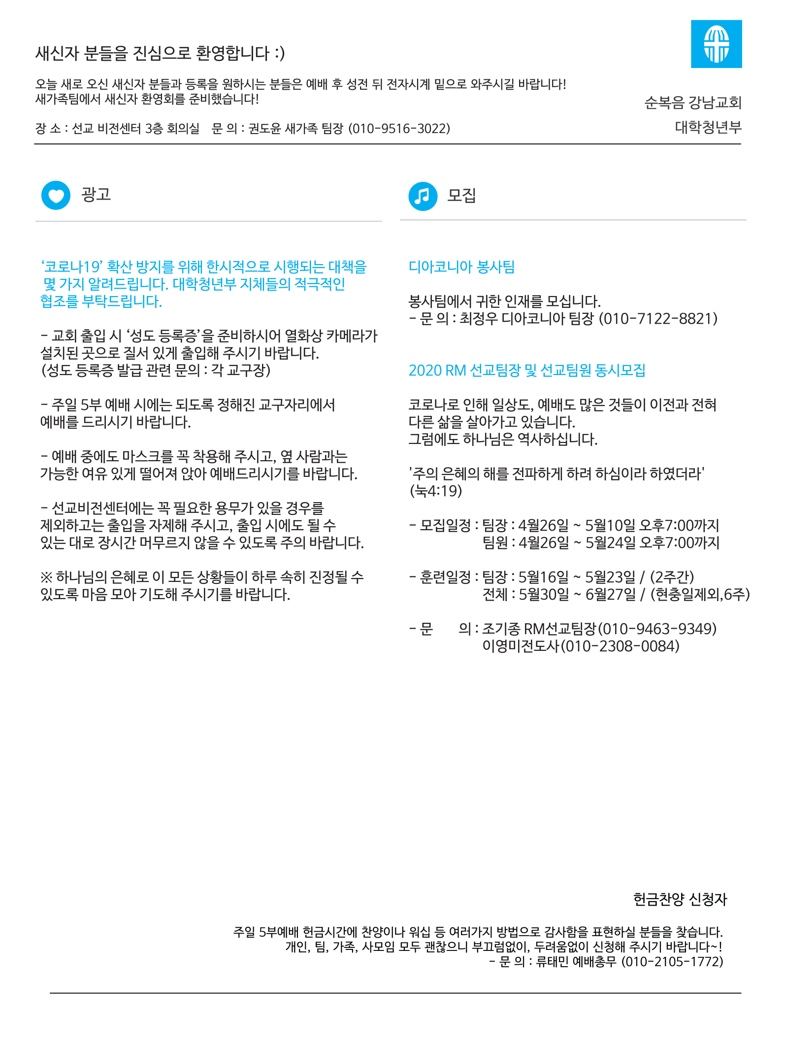 2020년도 5월 둘째 주일 청년주보 '나비'