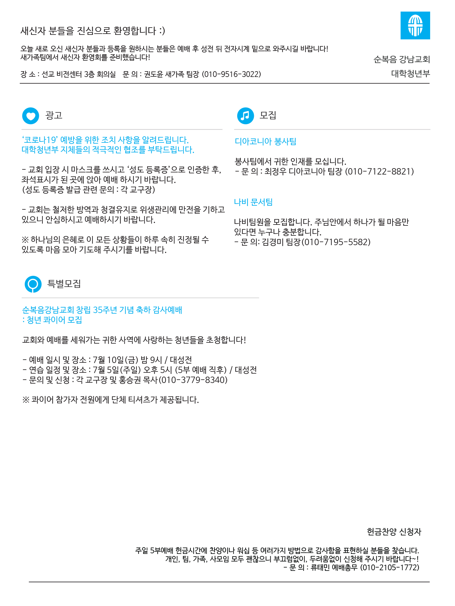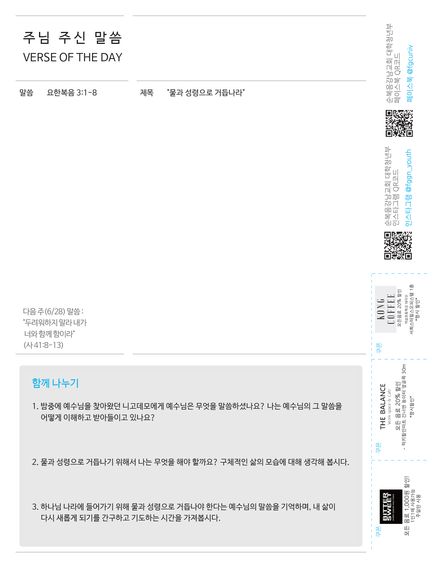 2020년도 6월 셋째 주일 청년주보 '나비'