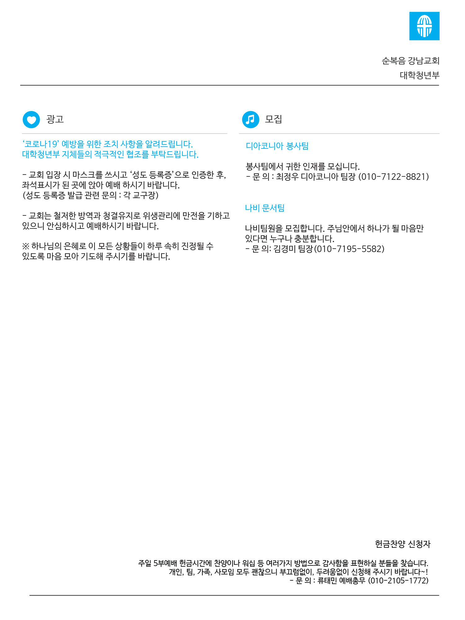 2020년도 6월 셋째 주일 청년주보 '나비'