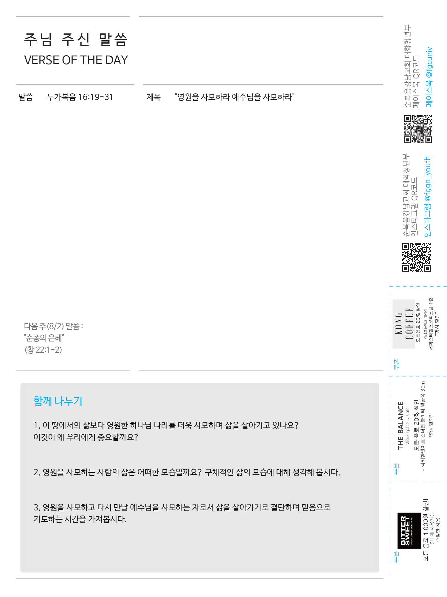 2020년도 7월 넷째 주일 청년주보 '나비'