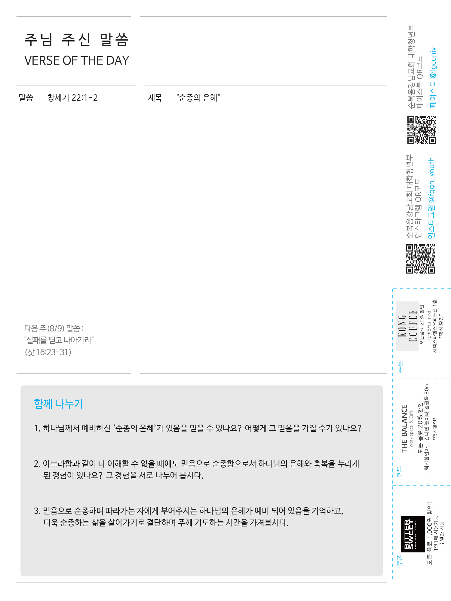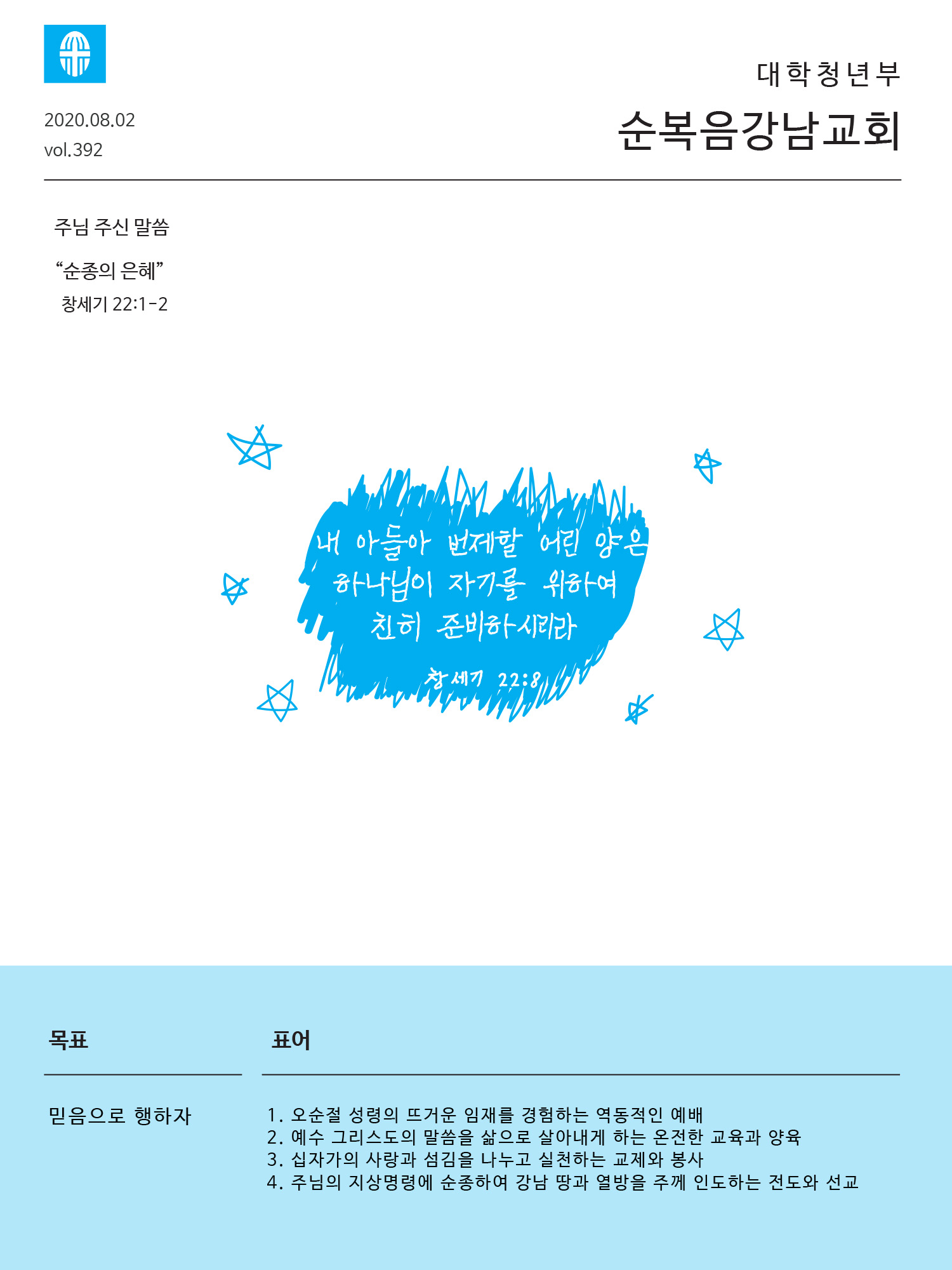 2020년도 8월 첫째 주일 청년주보 '나비'