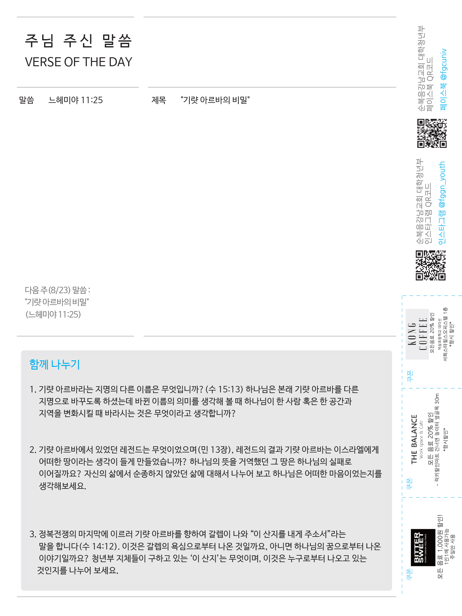 2020년도 8월 셋째 주일 청년주보 '나비'