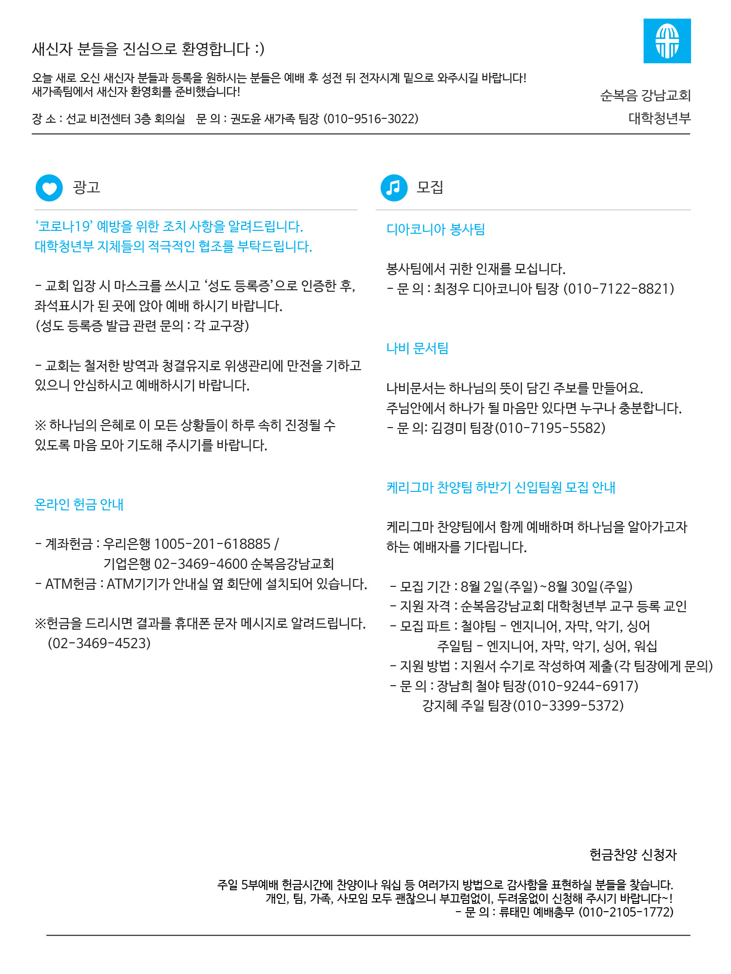 2020년도 7월 셋째 주일 청년주보 '나비'